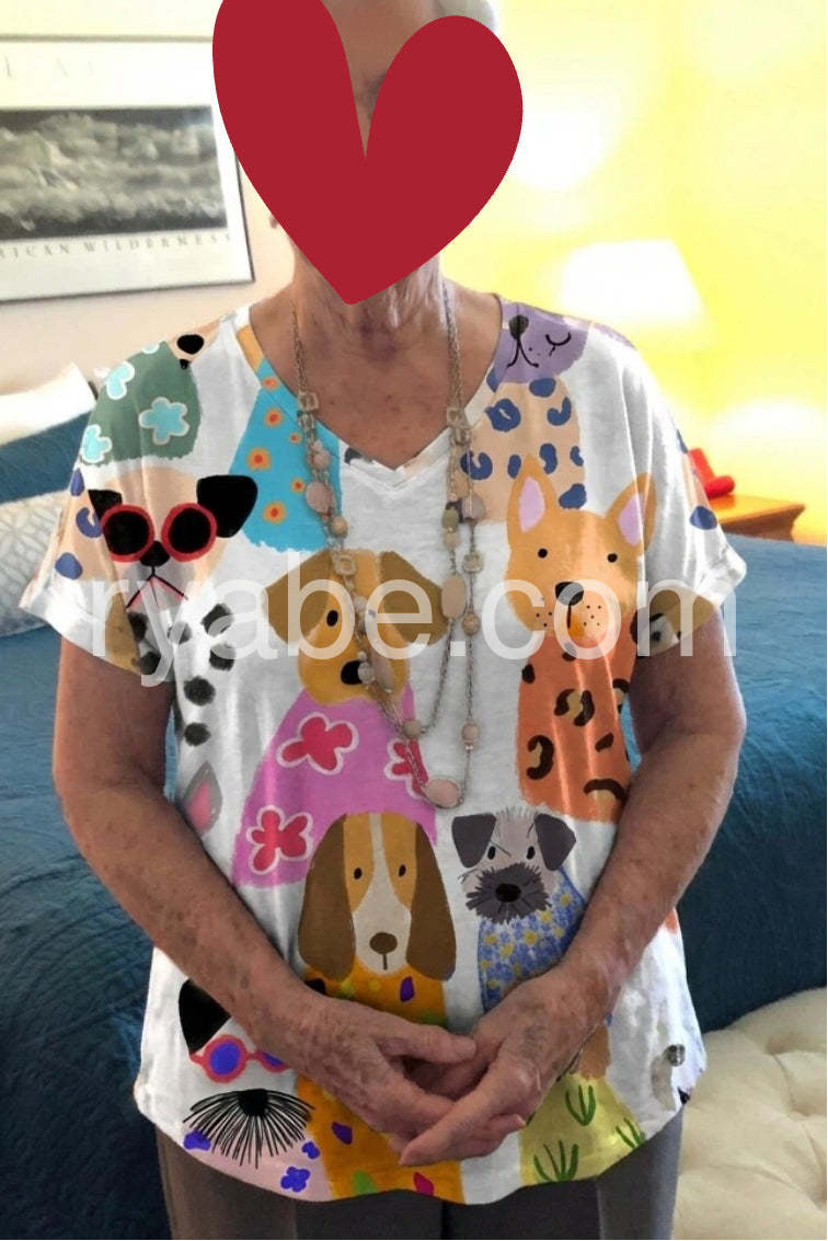 Yes!If you want a refund please contact our customer service at this email([email protected]).Brighten your day with this Whimsical Dog Print Short Sleeve Top, a cheerful and eye-catching piece that turns heads with its playful, hand-drawn style canine illustrations. Featuring an adorable array of cartoon dogs in vibrant outfits—complete with sunglasses, floral dresses, and bold patterns—this top brings a joyful, artistic flair to any outfit. Crafted from lightweight, breathable fabric—likely cotton or linen blend—it’s perfect for warm weather and casual wear. The relaxed fit, short sleeves, and soft V-neckline offer ultimate comfort and effortless style, making it ideal for beach days, brunches, or weekend outings. Whether you're a dog lover or simply adore fun fashion, this top is a must-have statement piece that blends humor, creativity, and charm. Pair it with white jeans, denim shorts, or flowy pants for a look that's both flirty and full of personality. Inspired by the whimsical spirit of brands like Lulus, this top celebrates individuality and lighthearted fashion—perfect for those who love to express their fun side with every step.