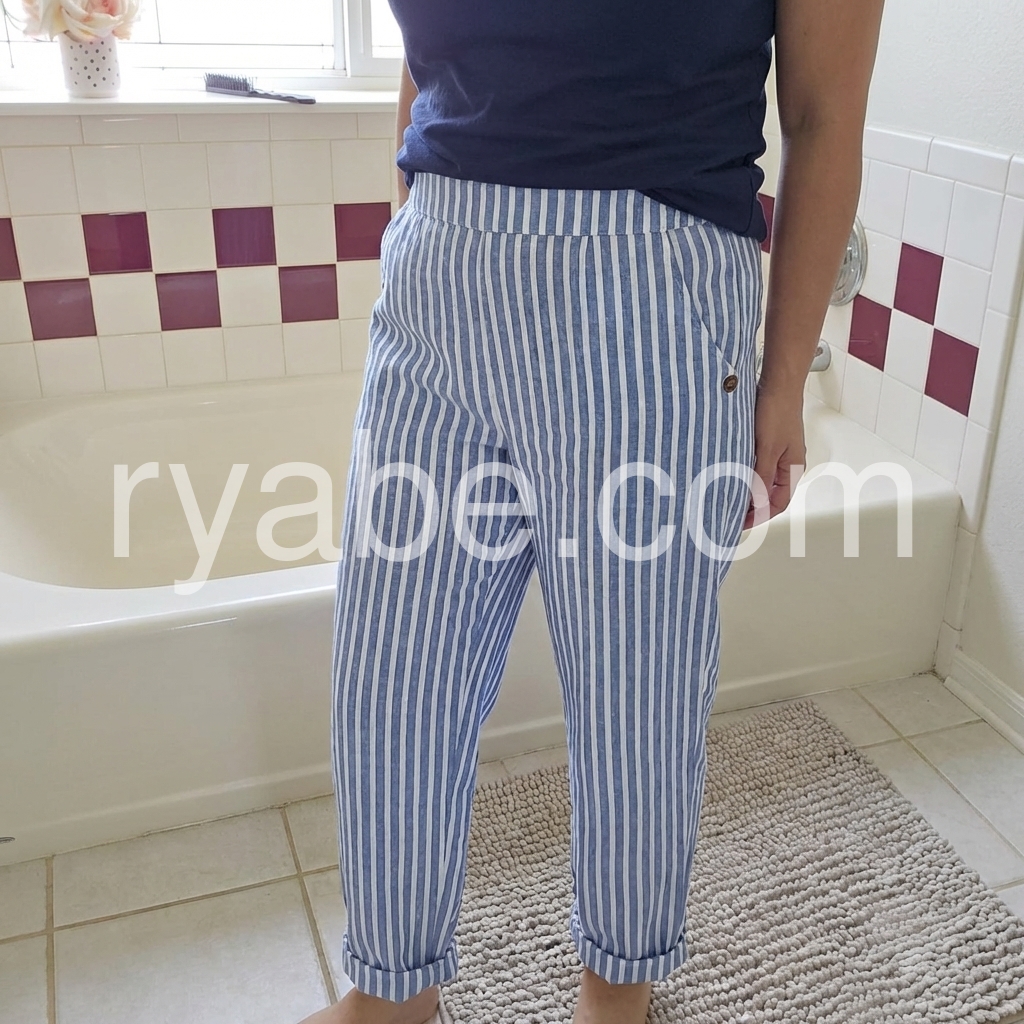 Yes!If you want a refund please contact our customer service at this email([email protected]).These relaxed-fit pants feature vertical blue and white stripes with a casual, breezy silhouette. Elastic waistband and side pockets for comfort. Cuffed hems add a stylish touch. Perfect for beach days or everyday wear. Lightweight fabric ideal for warm weather.