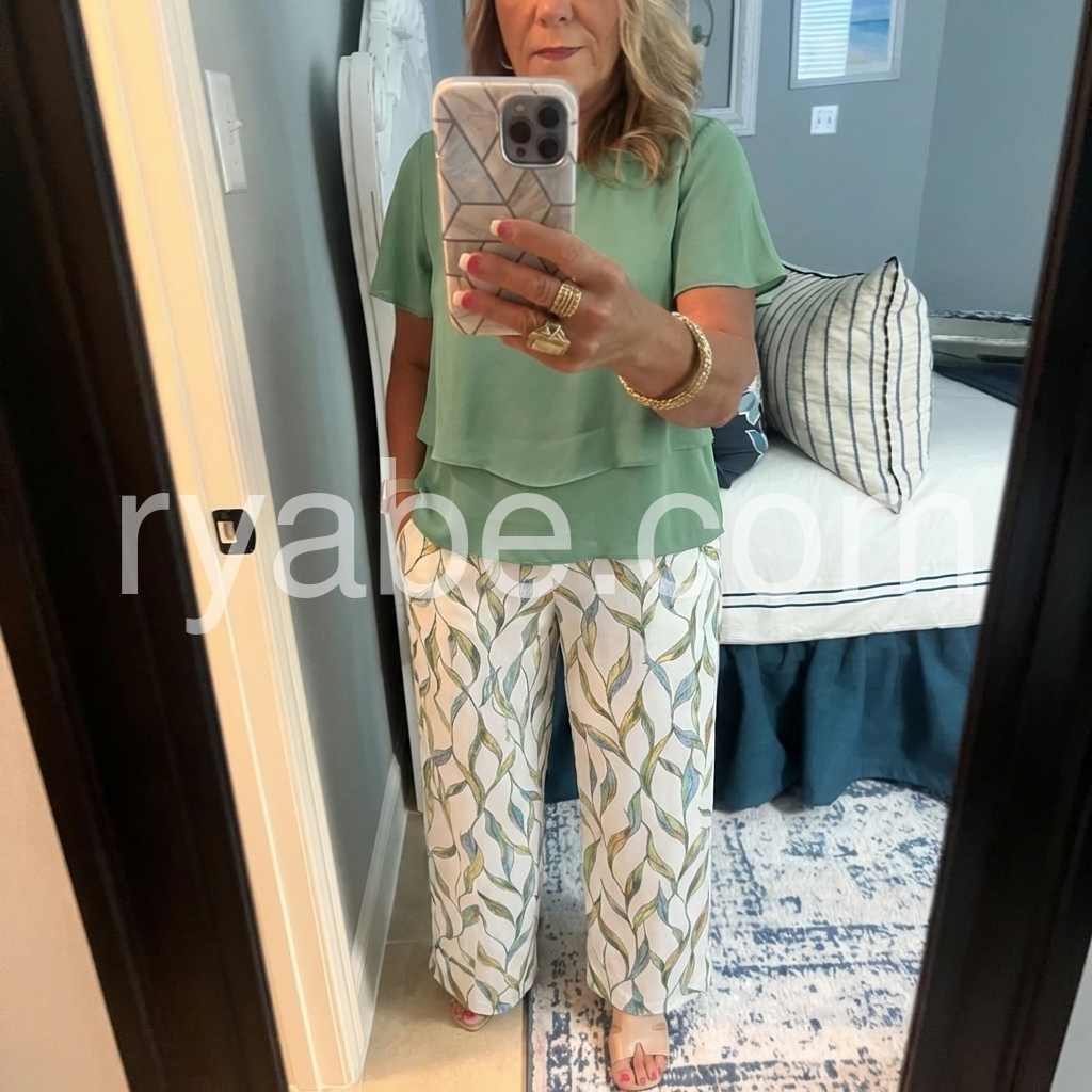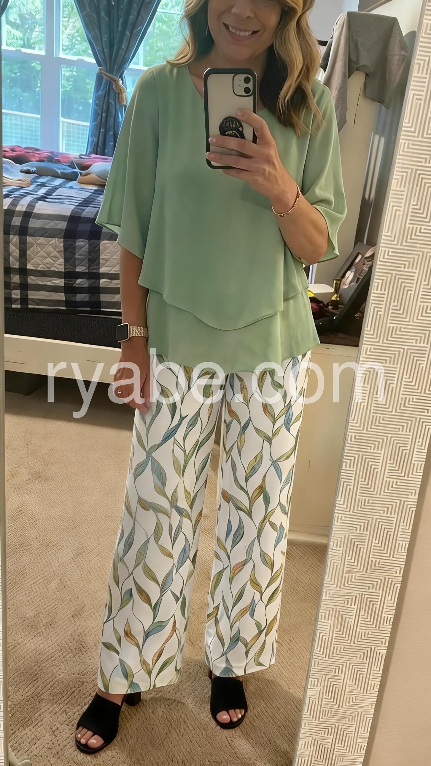 Yes!If you want a refund please contact our customer service at this email([email protected]).This two-piece outfit features a flowy green layered top with batwing sleeves. Paired with wide-leg pants in a soft leaf print. Lightweight and breathable fabric for all-day comfort. Perfect for casual outings or stylish everyday wear. Effortlessly chic and flattering.