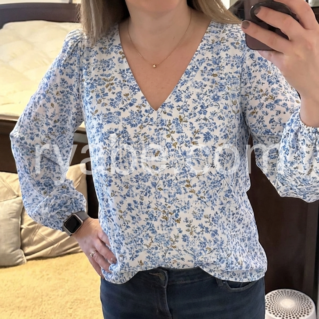 Yes!If you want a refund please contact our customer service at this email([email protected]).This V-neck top features a delicate blue floral print on a soft white base. Long puff sleeves with gathered cuffs add feminine flair. Lightweight fabric perfect for spring and summer. Pair with jeans or high-waisted pants for a stylish look. Effortlessly elegant with vintage charm.