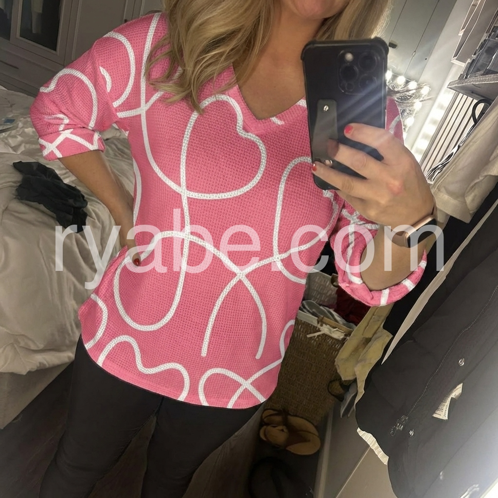 Yes!If you want a refund please contact our customer service at this email([email protected]).Elevate your casual wardrobe with this refined V-neck top, featuring a delicate heart outline design in soft pink. The flattering V-neckline creates a sophisticated silhouette while the minimalist graphic adds a touch of understated elegance. Crafted for versatility, this piece transitions seamlessly from day to evening, pairing effortlessly with jeans, skirts, or tailored trousers. The gentle pink hue complements a wide range of skin tones and coordinates with most color palettes. Perfect for those who appreciate subtle style details and quality basics that work harder in any wardrobe.