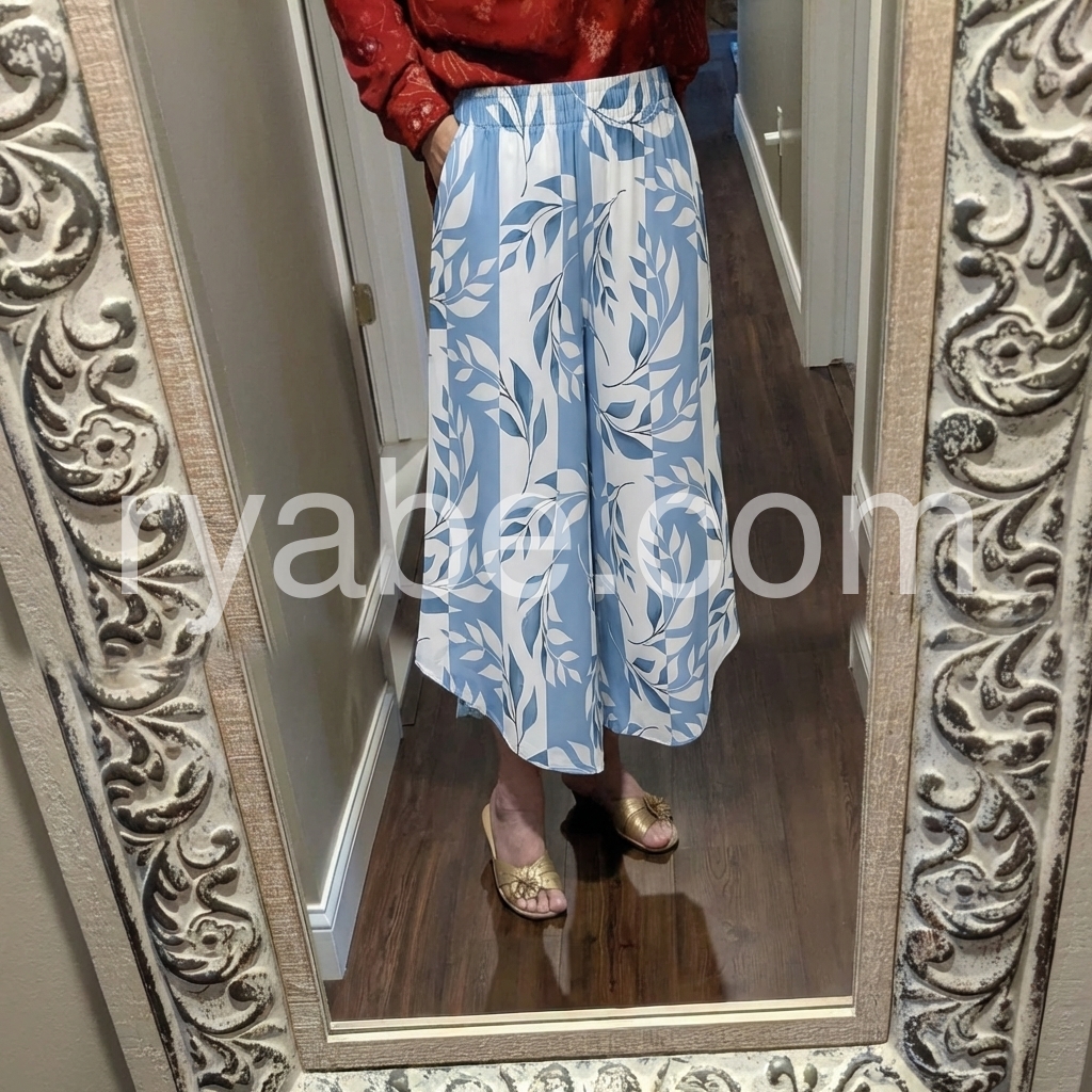 Yes!If you want a refund please contact our customer service at this email([email protected]).These flowy culottes feature a soft blue and white leaf pattern with a relaxed fit. Elastic waistband for comfort and ease of wear. Wide-leg design with a slightly asymmetrical hem. Lightweight fabric perfect for warm weather. Ideal for beach outings or casual summer days.