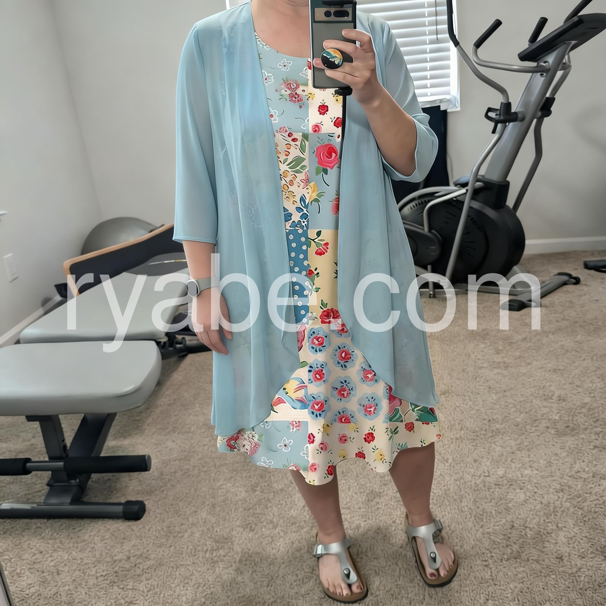 Yes!If you want a refund please contact our customer service at this email([email protected]).This colorful dress features a patchwork design with floral and polka dot patterns. Paired with a flowing light blue jacket for a layered look. Lightweight and perfect for spring or summer days. Ideal for casual outings or garden events. Stylish and full of charm.