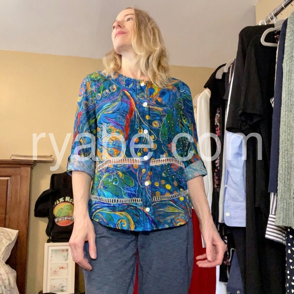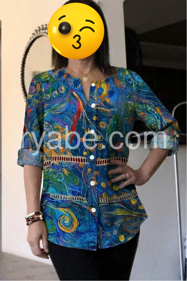 Yes!If you want a refund please contact our customer service at this email([email protected]).This long-sleeve button-up top features a bold blue base with colorful abstract patterns. The relaxed fit and rolled sleeves add comfort and style. Perfect for casual wear or bohemian outfits. Pair with jeans or leggings for effortless flair. Lightweight fabric ideal for warm days.
