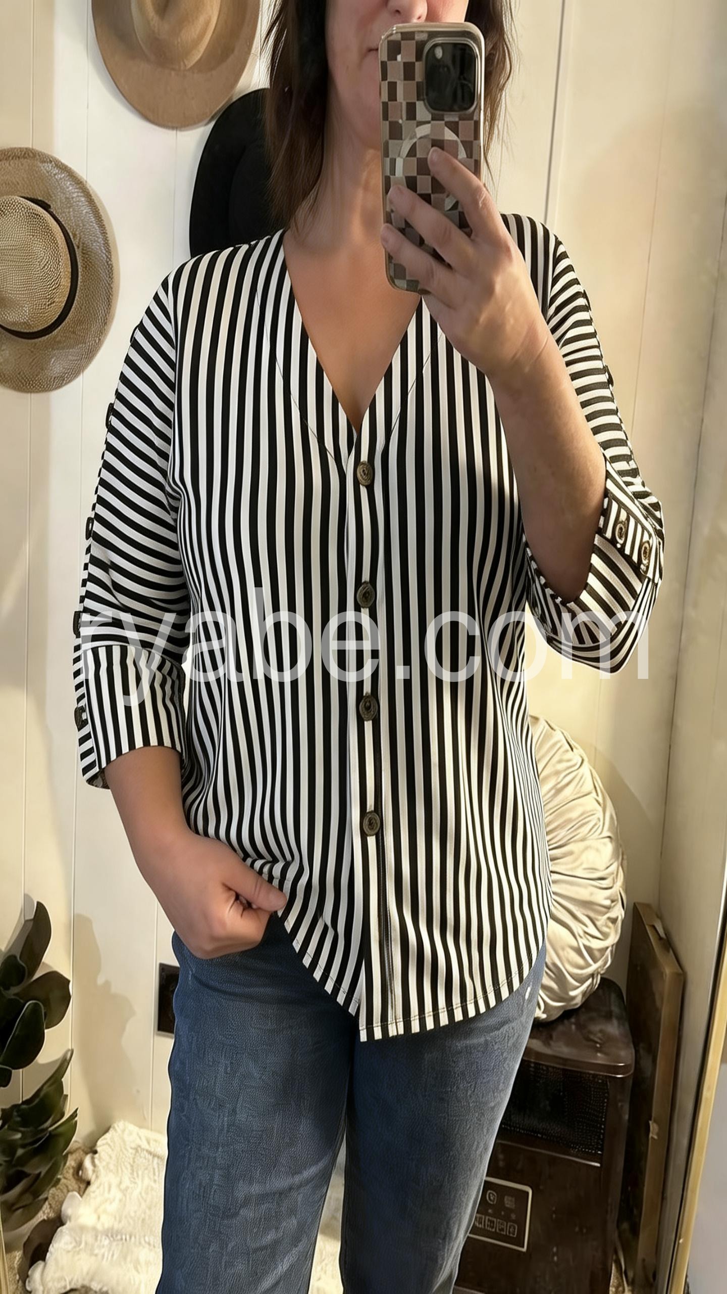 Yes!If you want a refund please contact our customer service at this email([email protected]).This button-down blouse features bold vertical stripes and a flattering V-neckline. Three-quarter sleeves with buttoned cuffs add a polished touch. Lightweight fabric perfect for casual or office wear. Ideal for pairing with jeans or trousers. Timeless style with modern flair.