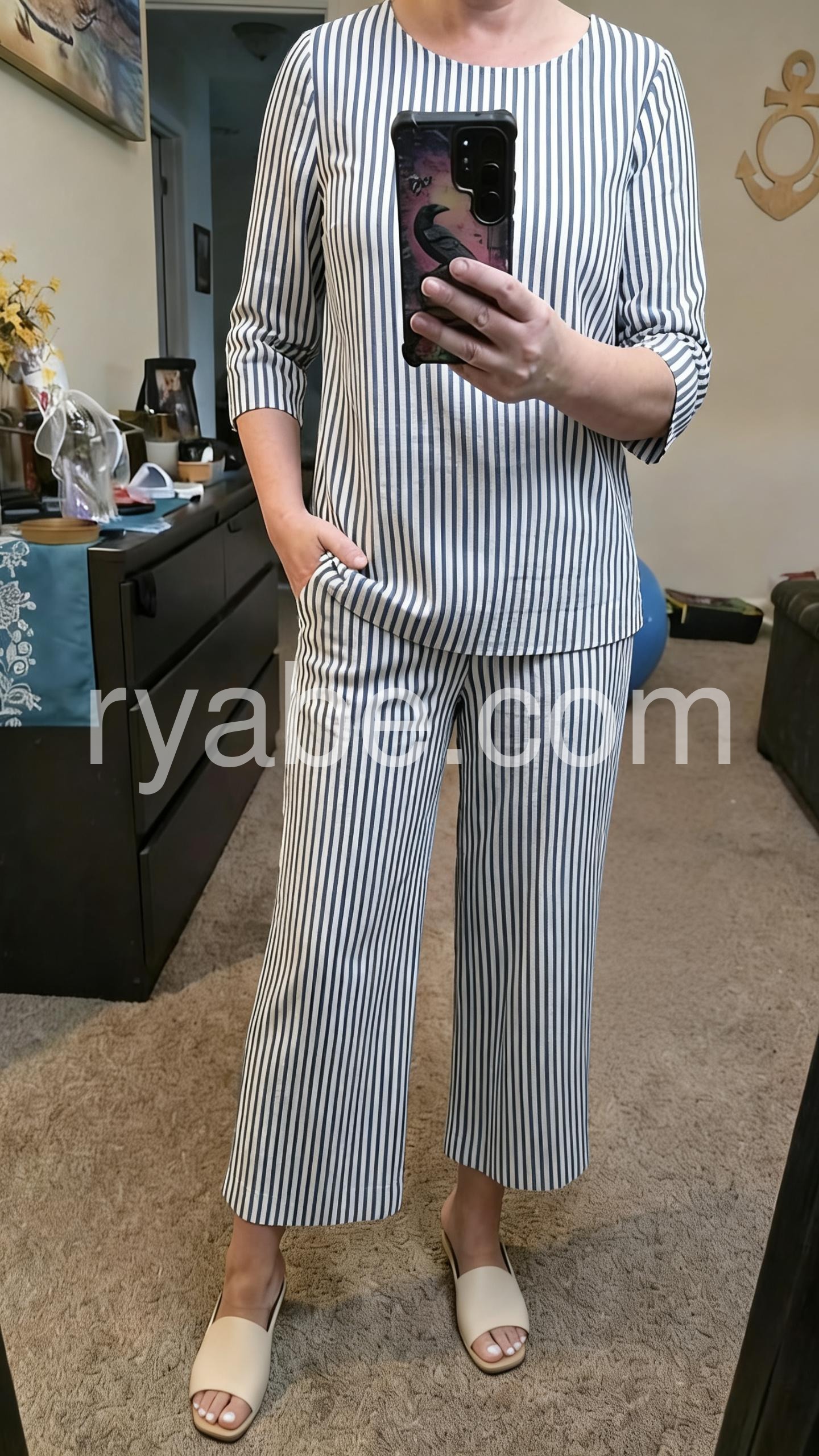 Yes!If you want a refund please contact our customer service at this email([email protected]).This coordinated set features a relaxed-fit top and wide-leg cropped pants in classic blue and white stripes. The three-quarter sleeves and round neckline offer a clean, timeless look. Lightweight fabric perfect for warm weather. Ideal for casual outings or smart-casual events. Effortlessly chic and easy to style.