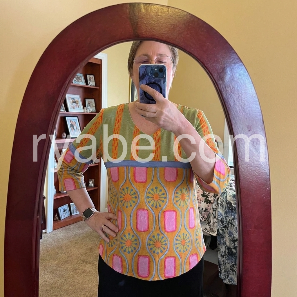 Yes!If you want a refund please contact our customer service at this email([email protected]).This three-quarter sleeve top features a bold, abstract pattern with geometric and floral motifs. The V-neck design adds a flattering touch. Lightweight fabric perfect for casual wear. Pair with jeans or shorts for a fun, bohemian look. Ideal for warm weather and relaxed outings.