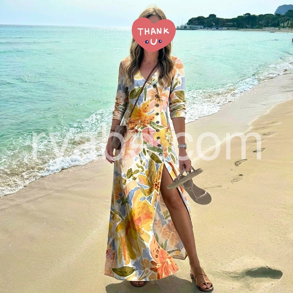 The deep V-neck and flowy maxi silhouette hug your curves in all the right ways, while the high slit lets you flash a little leg for extra sass.