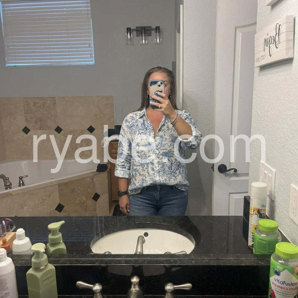 Yes!If you want a refund please contact our customer service at this email([email protected]).Elevate your wardrobe with this Romantic Blue Floral Print Button Down Shirt, a refined piece that blends vintage charm with modern sophistication. Crafted from lightweight, breathable cotton or cotton-blend fabric, this long-sleeve shirt features an elegant toile de Jouy print—featuring delicate blue pastoral scenes of trees, figures, and floral motifs on a crisp white background—inspired by traditional French design. The clean collar and full button-down front offer a polished look, while the slightly relaxed fit ensures comfort and ease. Roll up the sleeves for a casual, lived-in vibe or keep them down for a more tailored appearance. Perfectly paired with jeans, denim shorts, or high-waisted trousers, it’s ideal for brunch dates, weekend outings, or office-to-evening transitions. Inspired by the curated, effortlessly chic styles found on Lulus.com, this blouse brings timeless elegance to any outfit. A must-have for those who love classic patterns, subtle romance, and wearable artistry. Let this shirt carry you through spring and summer with grace, style, and a touch of old-world charm.