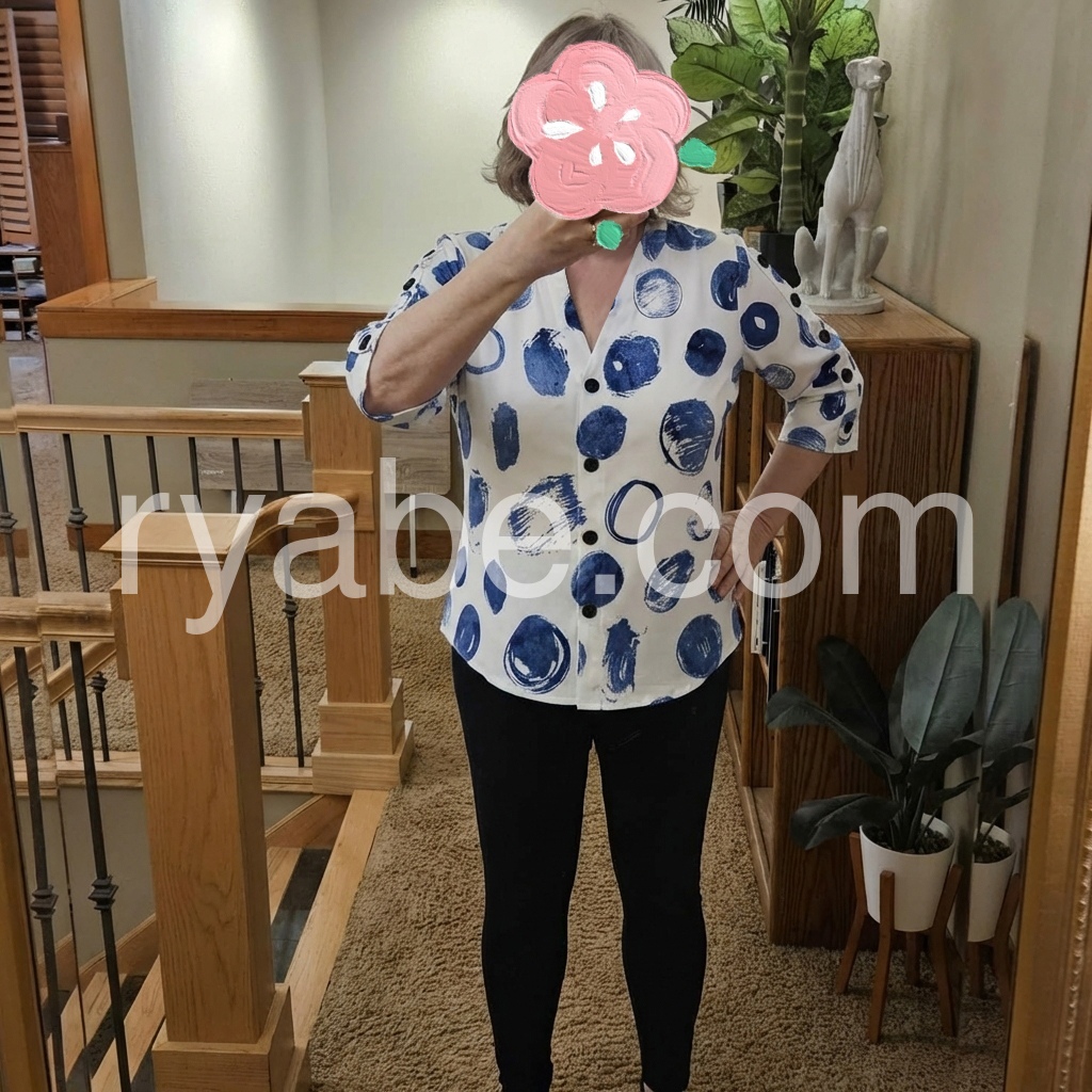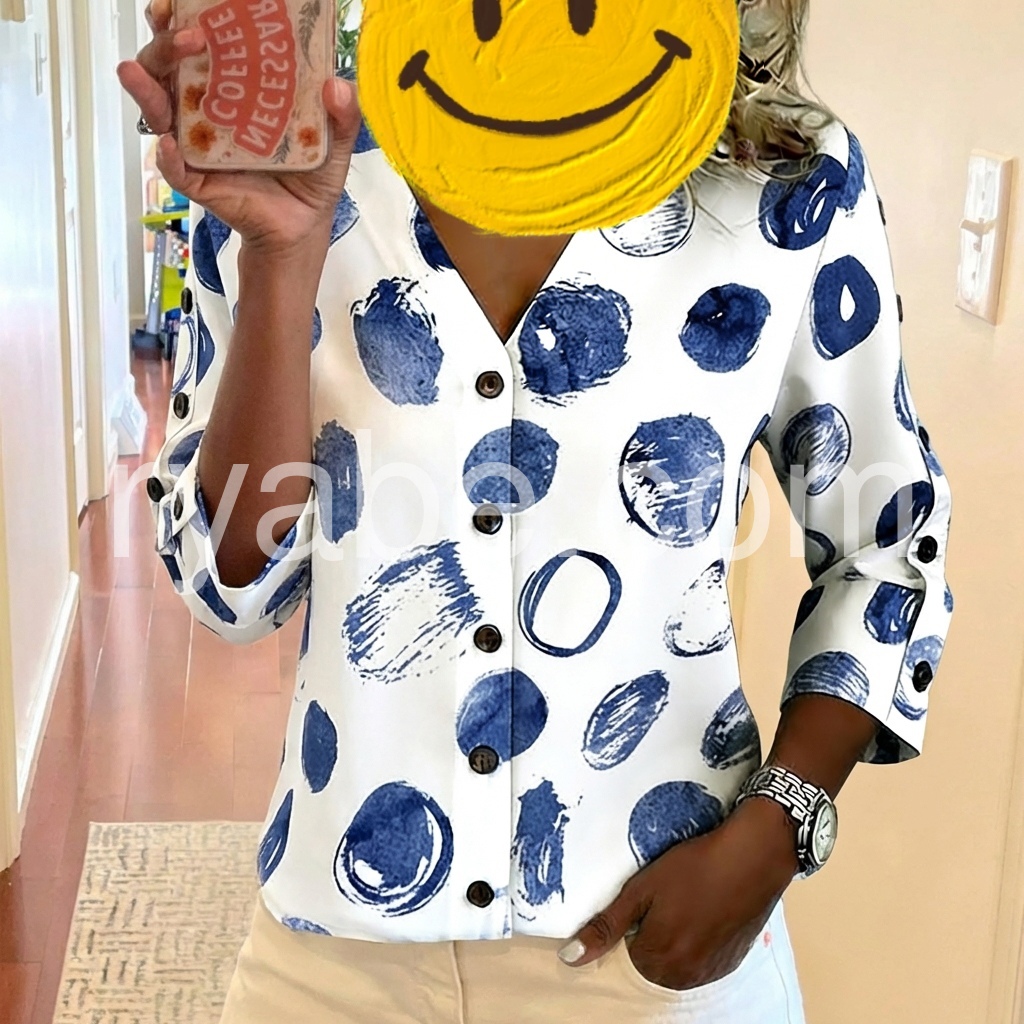 Yes!If you want a refund please contact our customer service at this email([email protected]).This V-neck blouse features a bold blue abstract dot print on a white background. Button-down front with three-quarter sleeves and button cuffs. Relaxed fit perfect for casual wear. Ideal for pairing with jeans or shorts. Modern and eye-catching design.