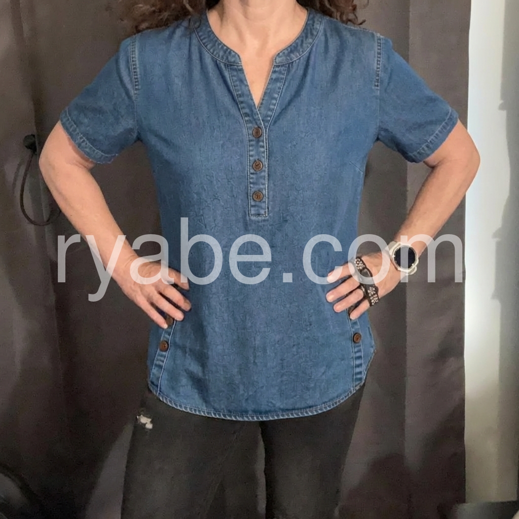 Yes!If you want a refund please contact our customer service at this email([email protected]).This denim-inspired top features a soft, textured fabric with subtle embossed patterns for added depth. The short sleeves and V-neckline with button detailing create a classic, flattering look. Side buttons add a unique touch and enhance the relaxed silhouette. Perfect for casual days or layered outfits. Pair with jeans or white pants for a fresh, effortless style.