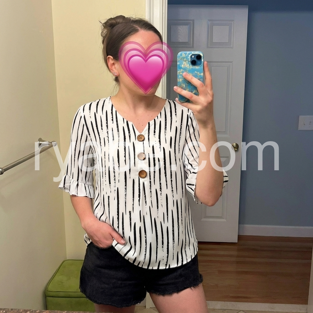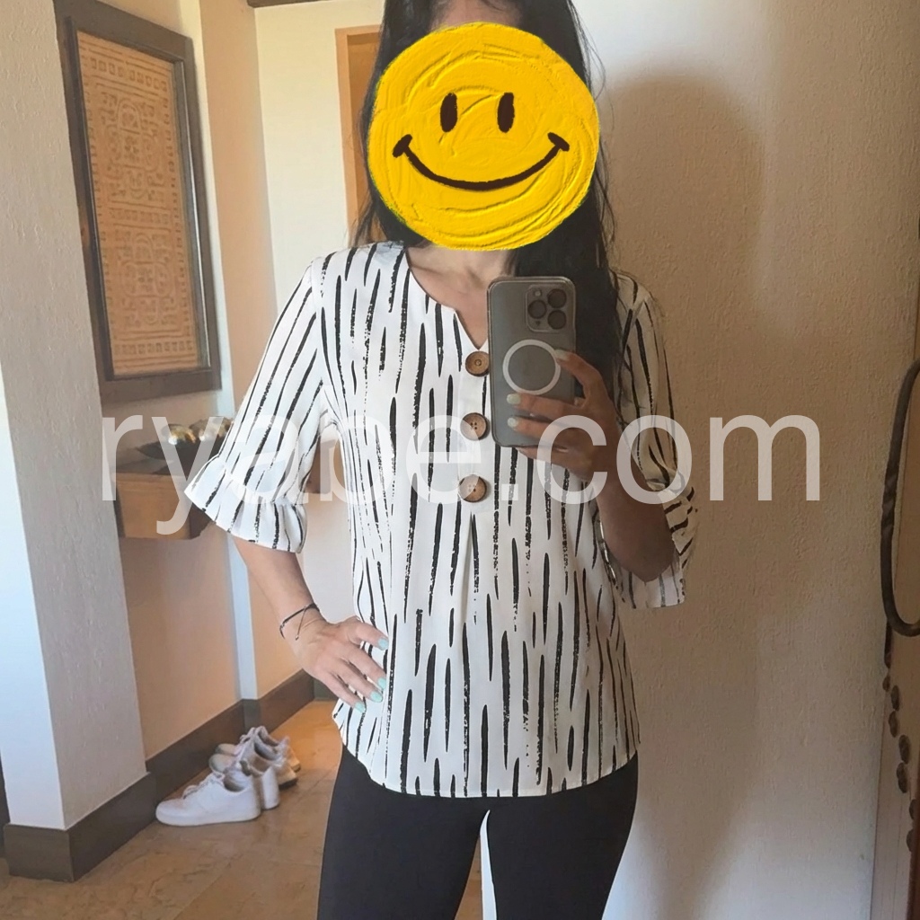 Yes!If you want a refund please contact our customer service at this email([email protected]).This loose-fitting top features a bold black abstract stripe print on white. V-neckline with wooden buttons down the front. Three-quarter sleeves with ruffled cuffs for a feminine touch. Lightweight and breathable, perfect for casual wear. Easy to pair with jeans or pants.