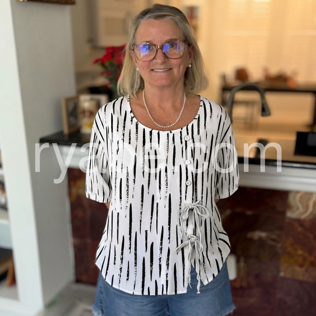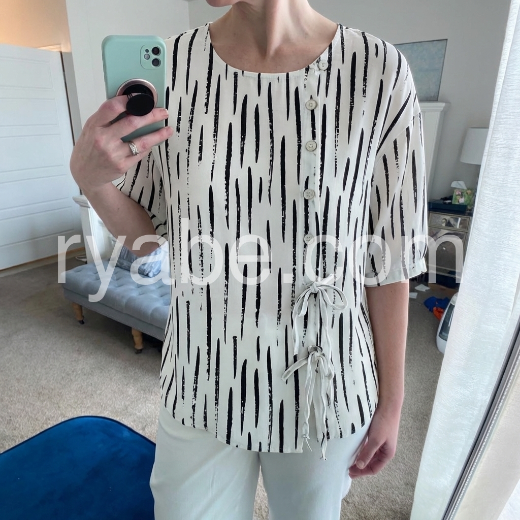 Yes!If you want a refund please contact our customer service at this email([email protected]).This relaxed-fit blouse features a bold black abstract stripe print on a white base. Round neckline with front button closure and side tie details. Lightweight fabric perfect for everyday wear. Ideal for pairing with jeans or leggings.