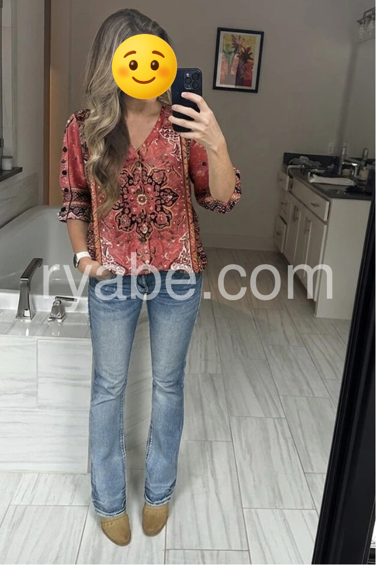 Yes!If you want a refund please contact our customer service at this email([email protected]).This V-neck top features a vibrant red base with an intricate mandala-inspired pattern. Button-down front and three-quarter sleeves with button cuffs add detail. Lightweight fabric for comfort and ease. Perfect for adding a bohemian flair to any outfit. Effortlessly stylish and eye-catching.