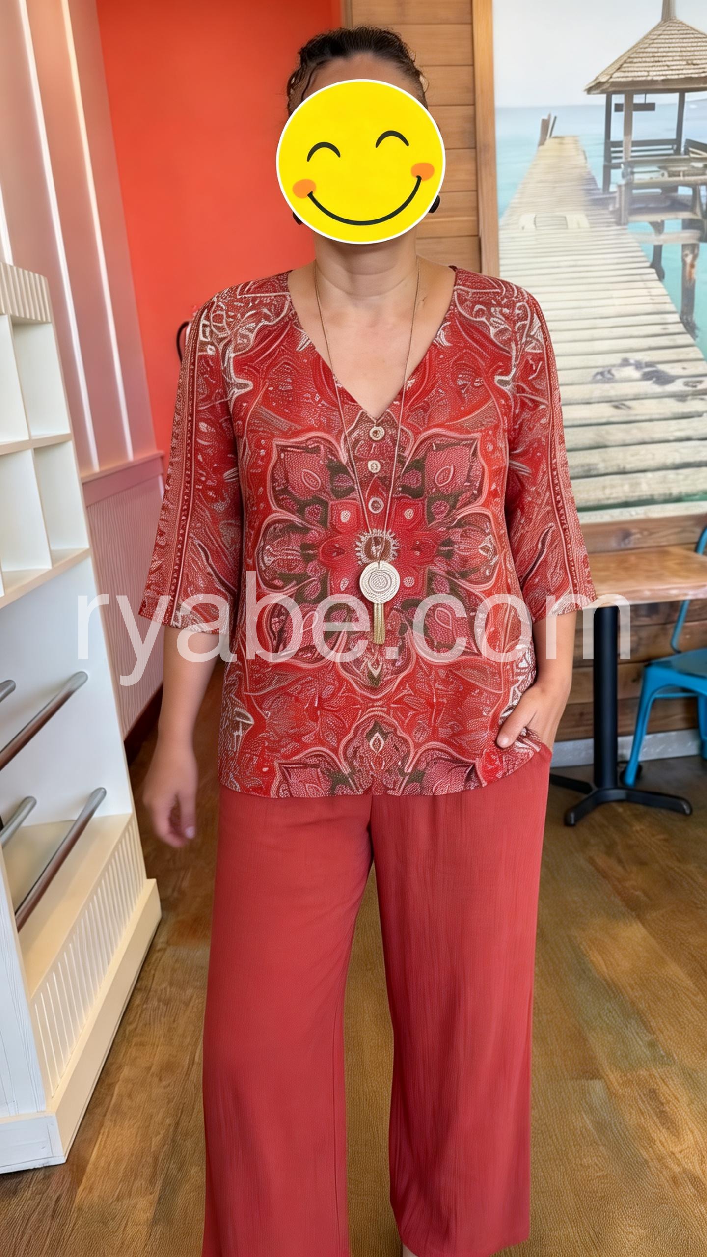 Yes!If you want a refund please contact our customer service at this email([email protected]).This coordinated set features a V-neck top with a bold mandala print and matching solid wide-leg pants. The relaxed fit ensures all-day comfort. Soft fabric perfect for warm weather. Ideal for casual outings or stylish days out. Effortlessly chic with a bohemian flair.