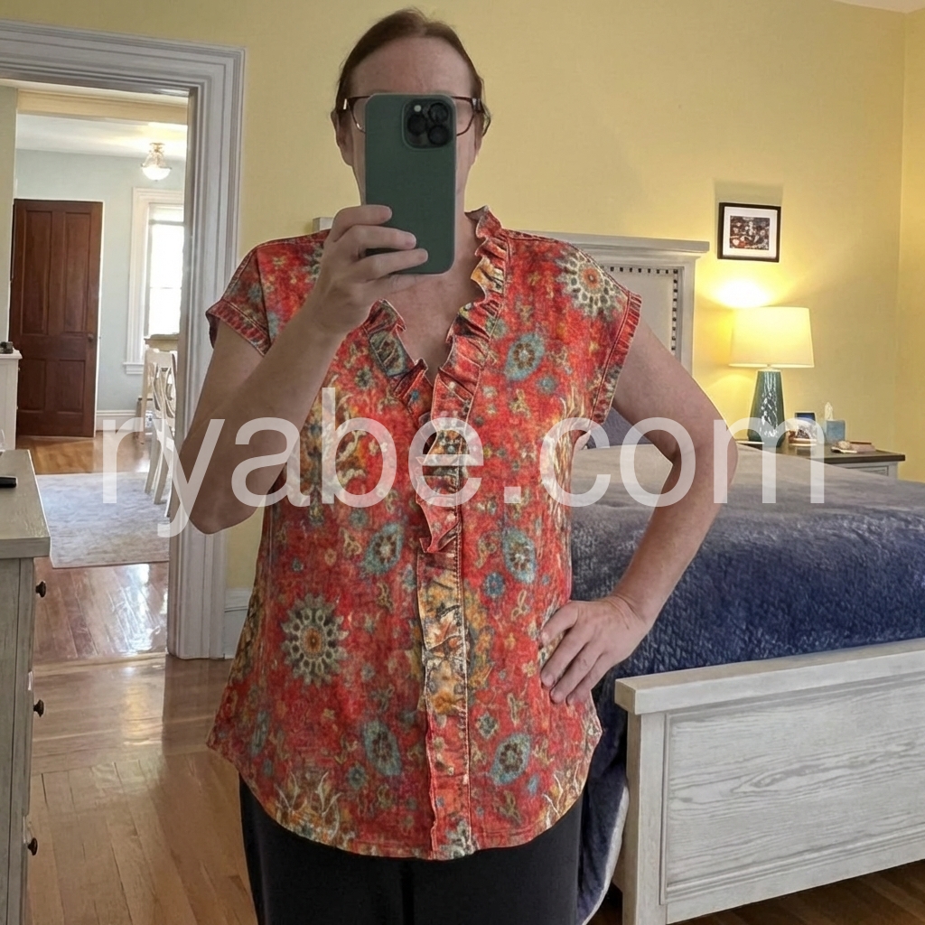 Yes!If you want a refund please contact our customer service at this email([email protected]).This Short Sleeve top features a rich red base with intricate mandala and floral patterns. The ruffled V-neckline adds a feminine, bohemian flair. Lightweight fabric drapes softly for a relaxed fit. Perfect for pairing with white jeans or denim shorts. Ideal for summer days with a touch of global style.