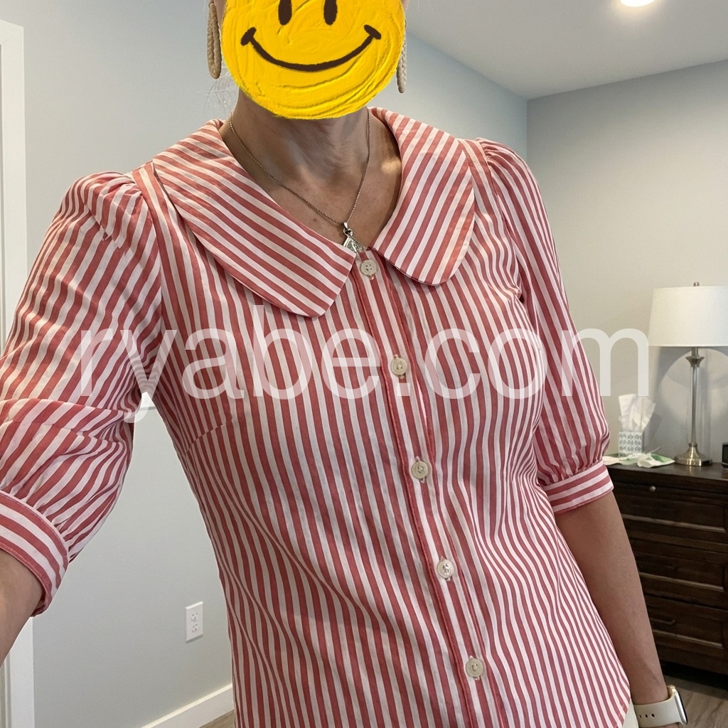 Yes!If you want a refund please contact our customer service at this email([email protected]).This blouse brings retro, feminine charm to your wardrobe. The classic red-and-white stripe print, paired with a sweet Peter Pan collar, feels endlessly romantic.