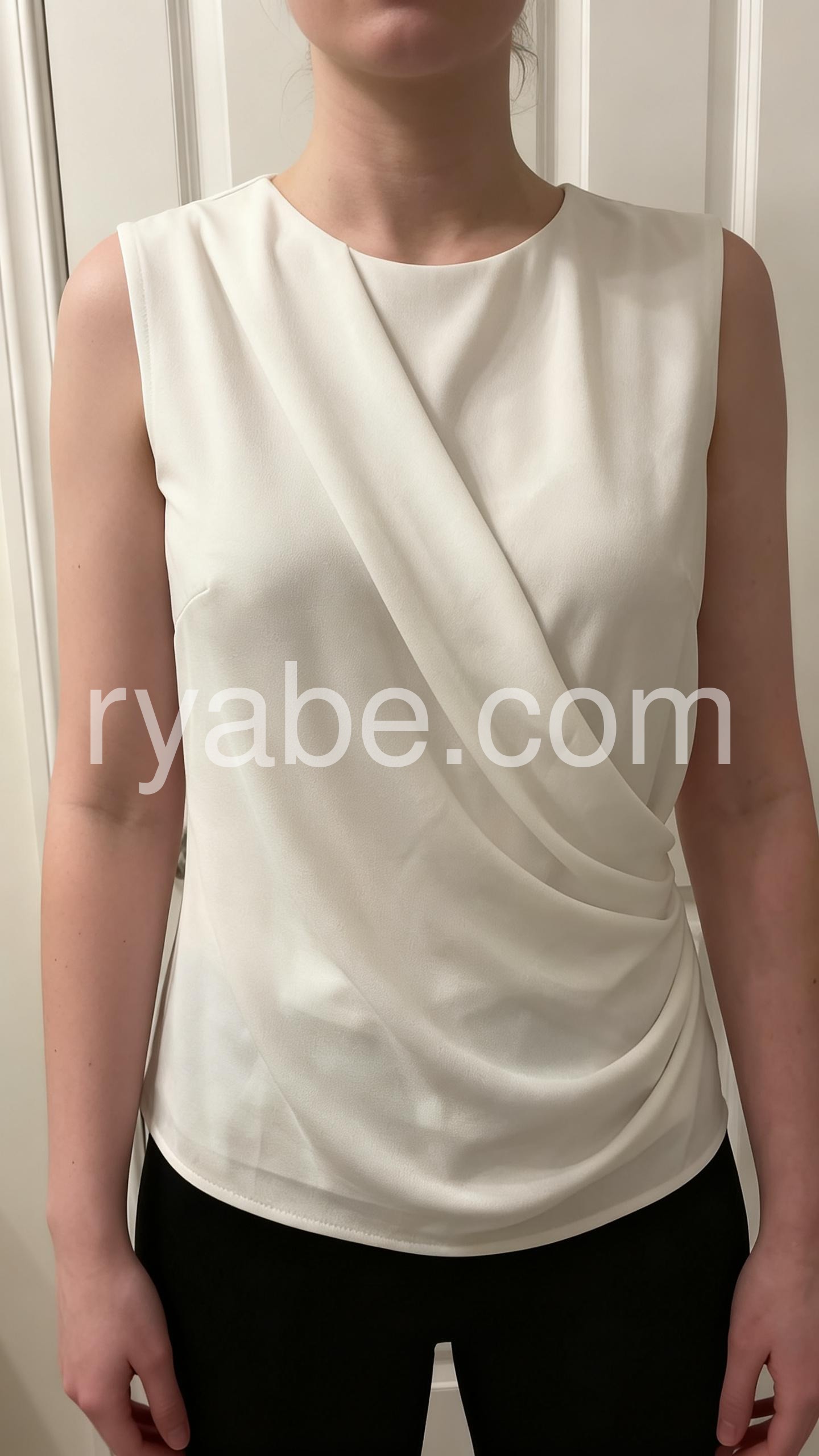 Classic White Draped Sleeveless Top