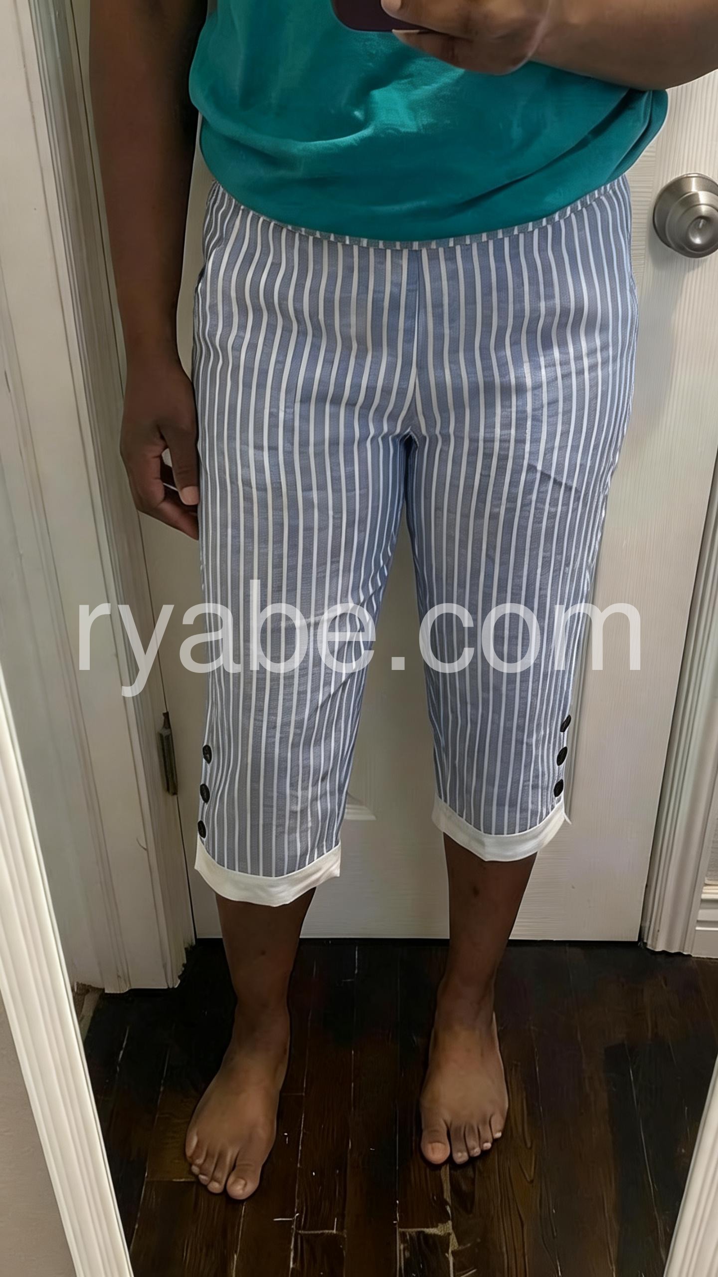 Light Blue Striped Capri Pants