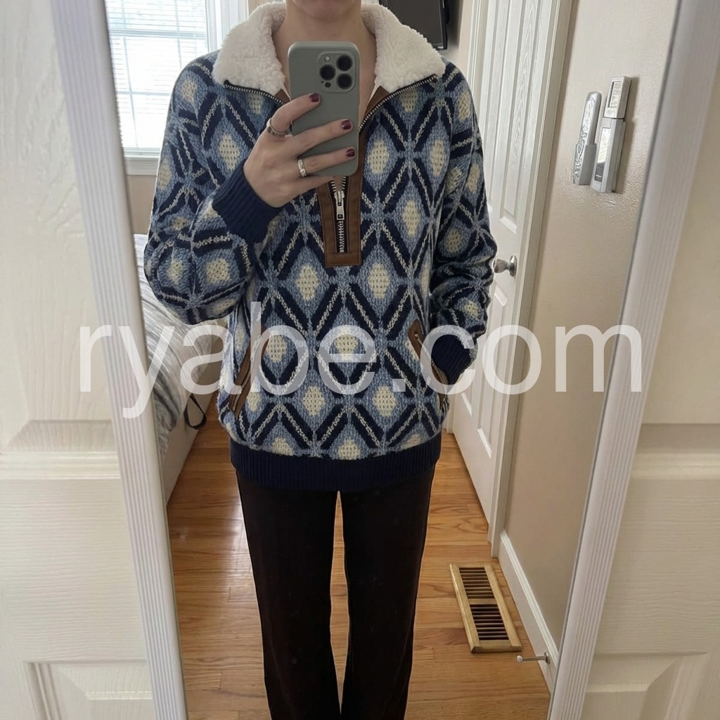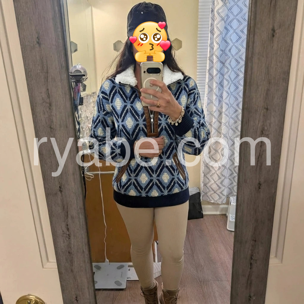 Yes!If you want a refund please contact our customer service at this email([email protected]).Elevate your cold-weather wardrobe with this sophisticated knit sweater, featuring a striking blue geometric pattern that adds visual interest to any ensemble. The fleece lining provides exceptional warmth and comfort, making it an ideal choice for layering or standalone wear during transitional seasons. Crafted from quality knit fabric, this piece combines contemporary design with practical functionality. The geometric detailing brings modern flair while maintaining versatility—pair it effortlessly with jeans, trousers, or skirts for polished everyday styling.