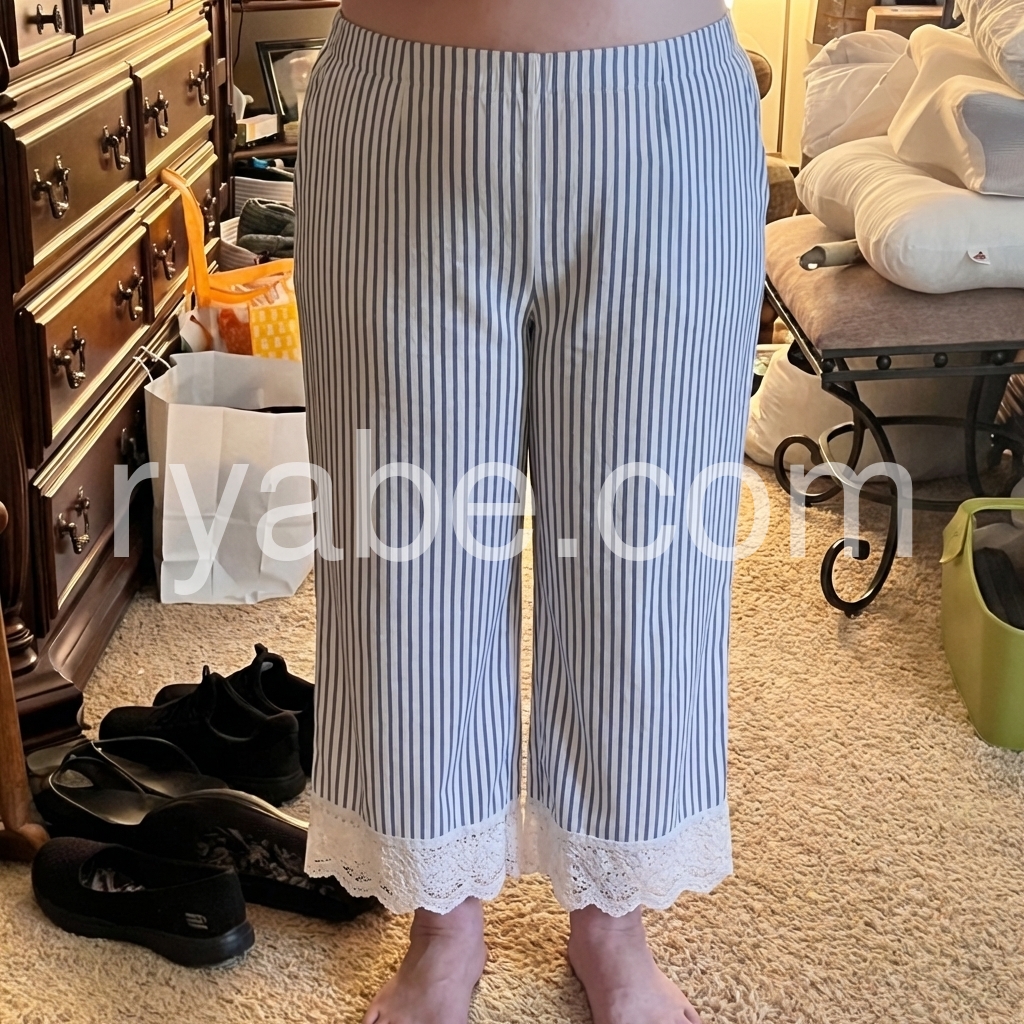 Yes!If you want a refund please contact our customer service at this email([email protected]).These relaxed-fit pants feature vertical blue and white stripes with a delicate lace trim at the hem. Elastic waistband and side pockets for comfort. Lightweight fabric perfect for warm weather. Ideal for beach days or casual outings. Effortlessly stylish and breezy.
