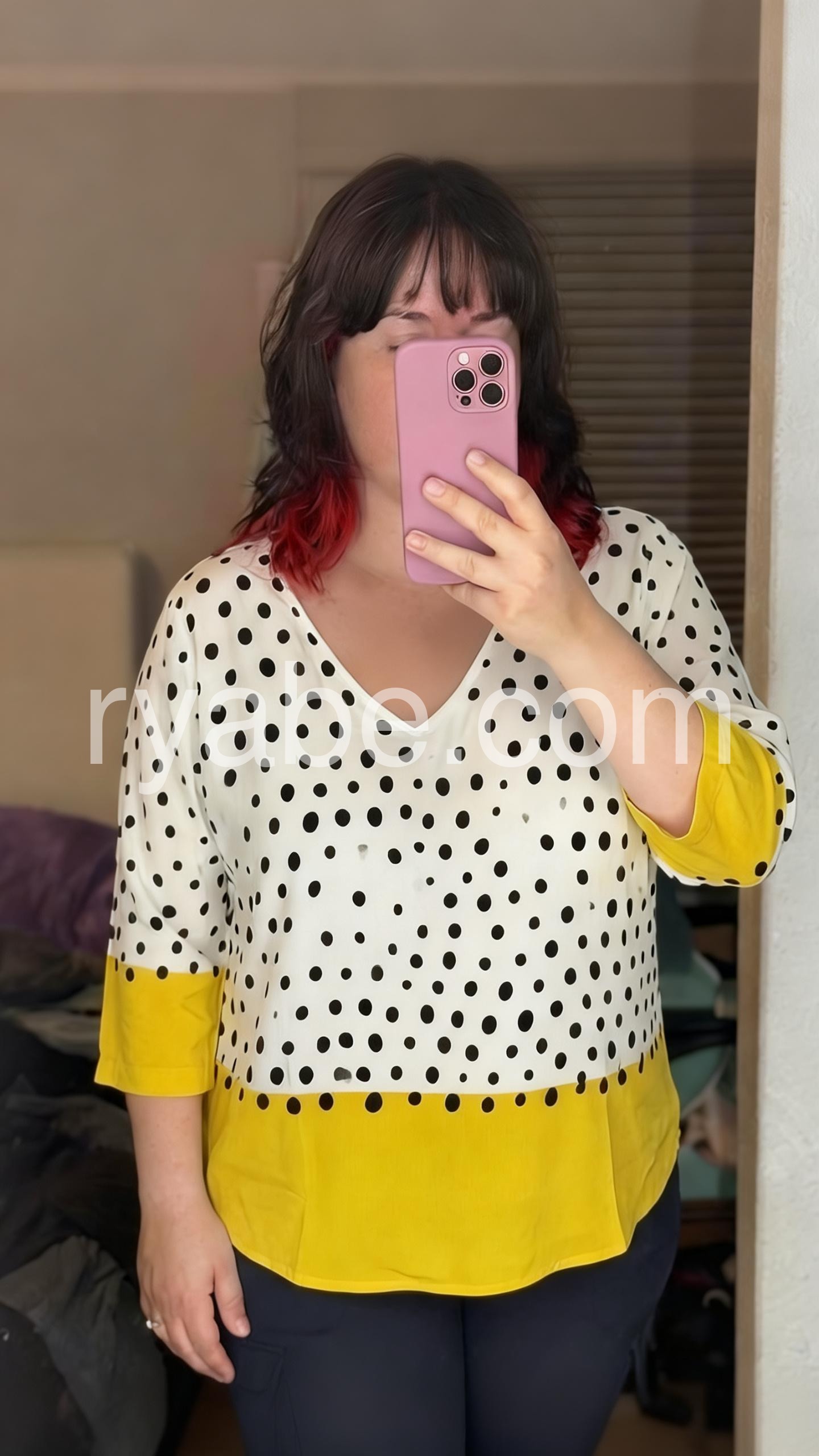 Yes!If you want a refund please contact our customer service at this email([email protected]).This relaxed-fit top features a white base with black polka dots and a vibrant yellow hem. V-neckline and three-quarter sleeves with rolled cuffs. Lightweight fabric for comfort and style. Perfect for casual wear or adding a pop of color to your outfit. Effortlessly trendy and easy to pair.