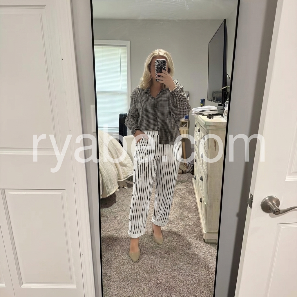 Yes!If you want a refund please contact our customer service at this email([email protected]).These loose-fit pants feature a modern black abstract stripe print on a white base. Side button details add a unique touch. Elastic waistband and cuffed hems for comfort. Perfect for casual outings or beach days. Effortlessly chic with a relaxed silhouette.