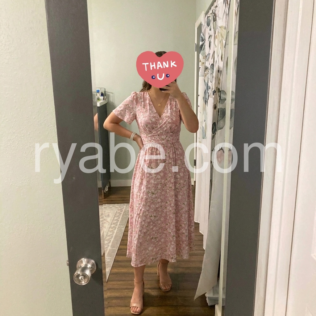 Yes!If you want a refund please contact our customer service at this email([email protected]).This mid-length dress features a soft pink base with delicate white floral prints. V-neckline and short flutter sleeves add feminine charm. Wrapped front design with a defined waist for a flattering fit. Lightweight fabric perfect for warm days. Ideal for brunches, garden parties, or casual outings.